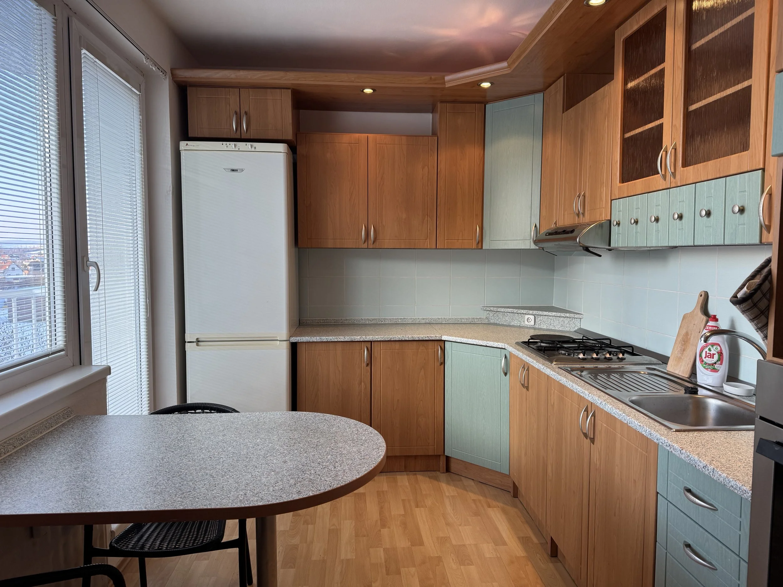 Byt je umiestnený na 4 p./7 p. bytového domu s moderným výťahom, má veľký balkón, je čiastočne zariadený, k dispozícii chladnička, práčka, je určený pre solventných, napr. aj rodinku s jedným dieťaťom, zvieratká nie.